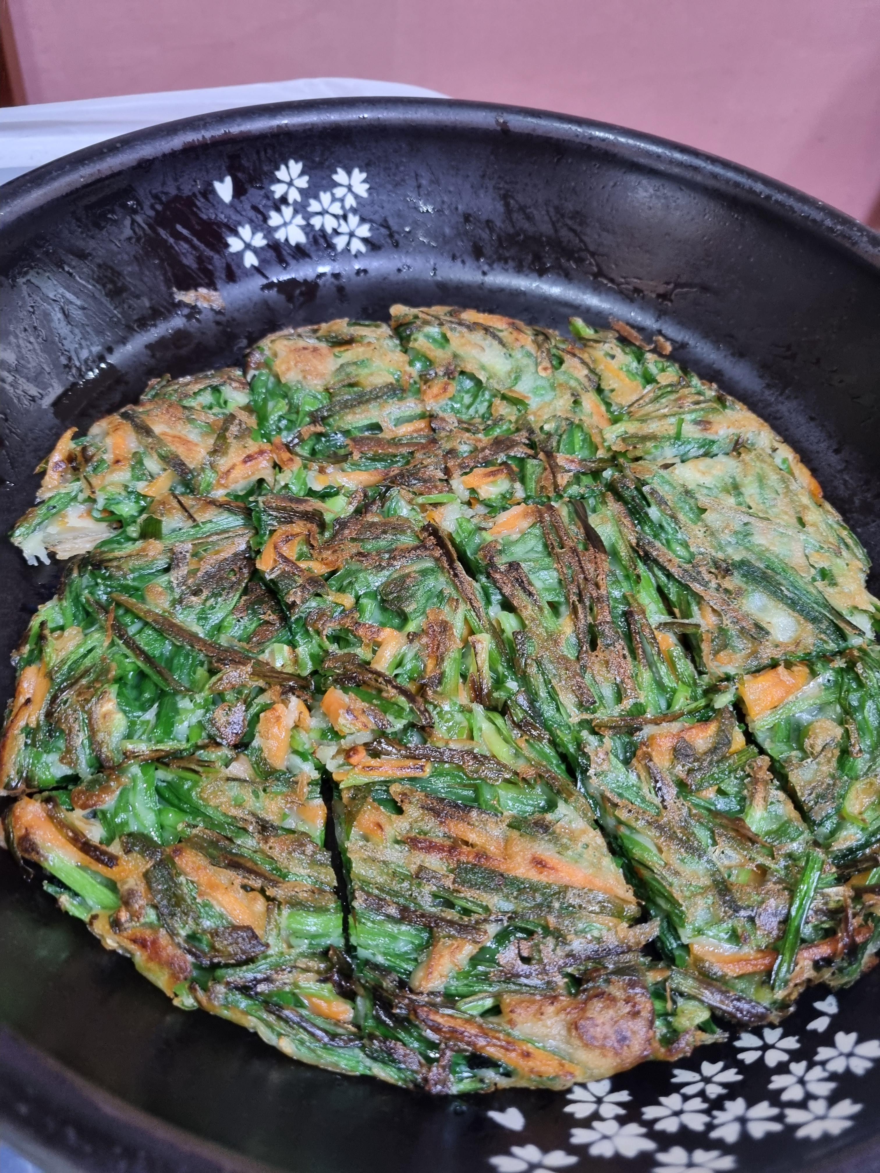 바삭한 튀김에 듬뿍 들어간 부추가 감칠맛 난다.