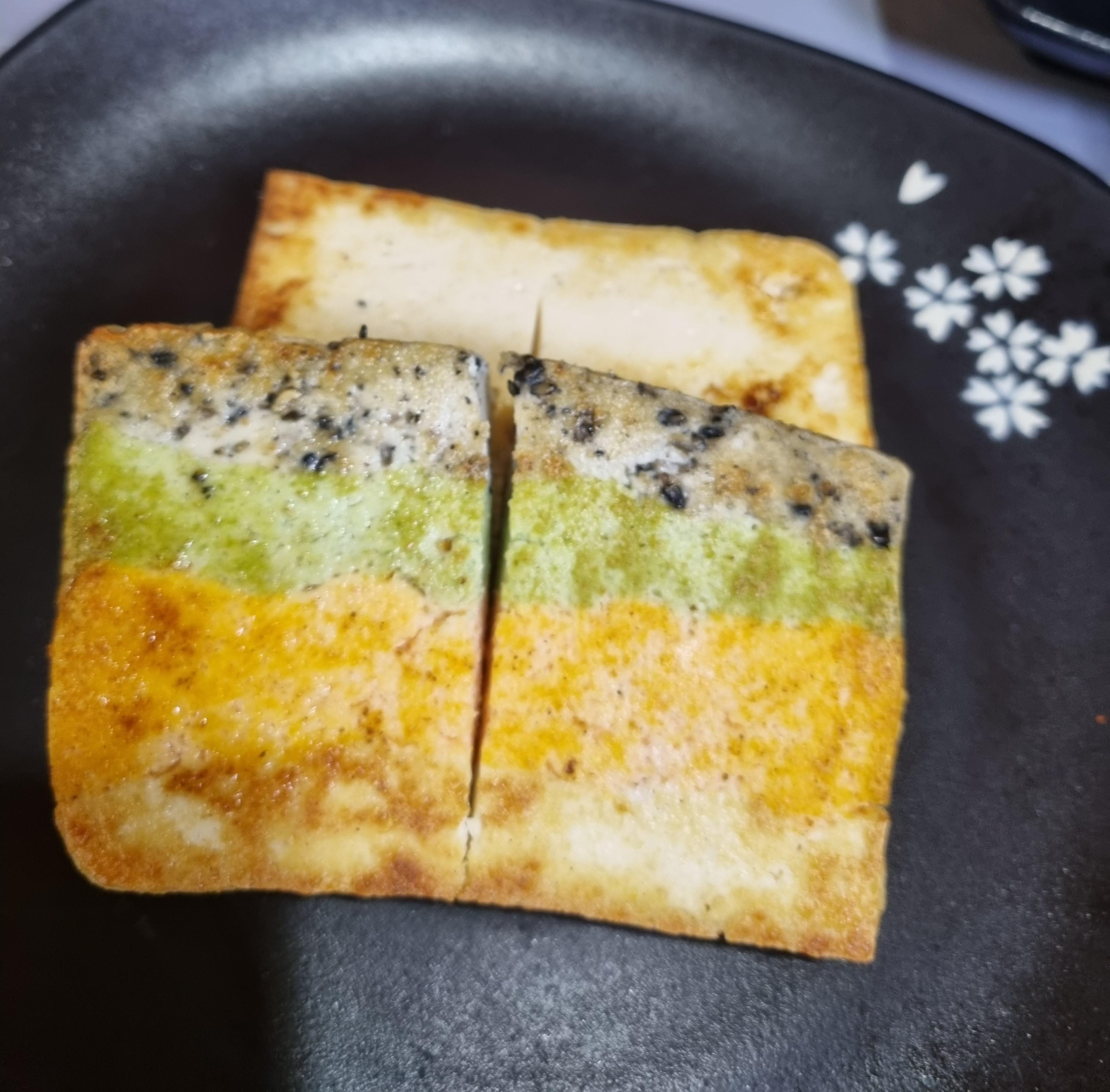 두툼하고 색이 예쁜 구운 색두부!! 김치 올려먹으면 존맛탱임