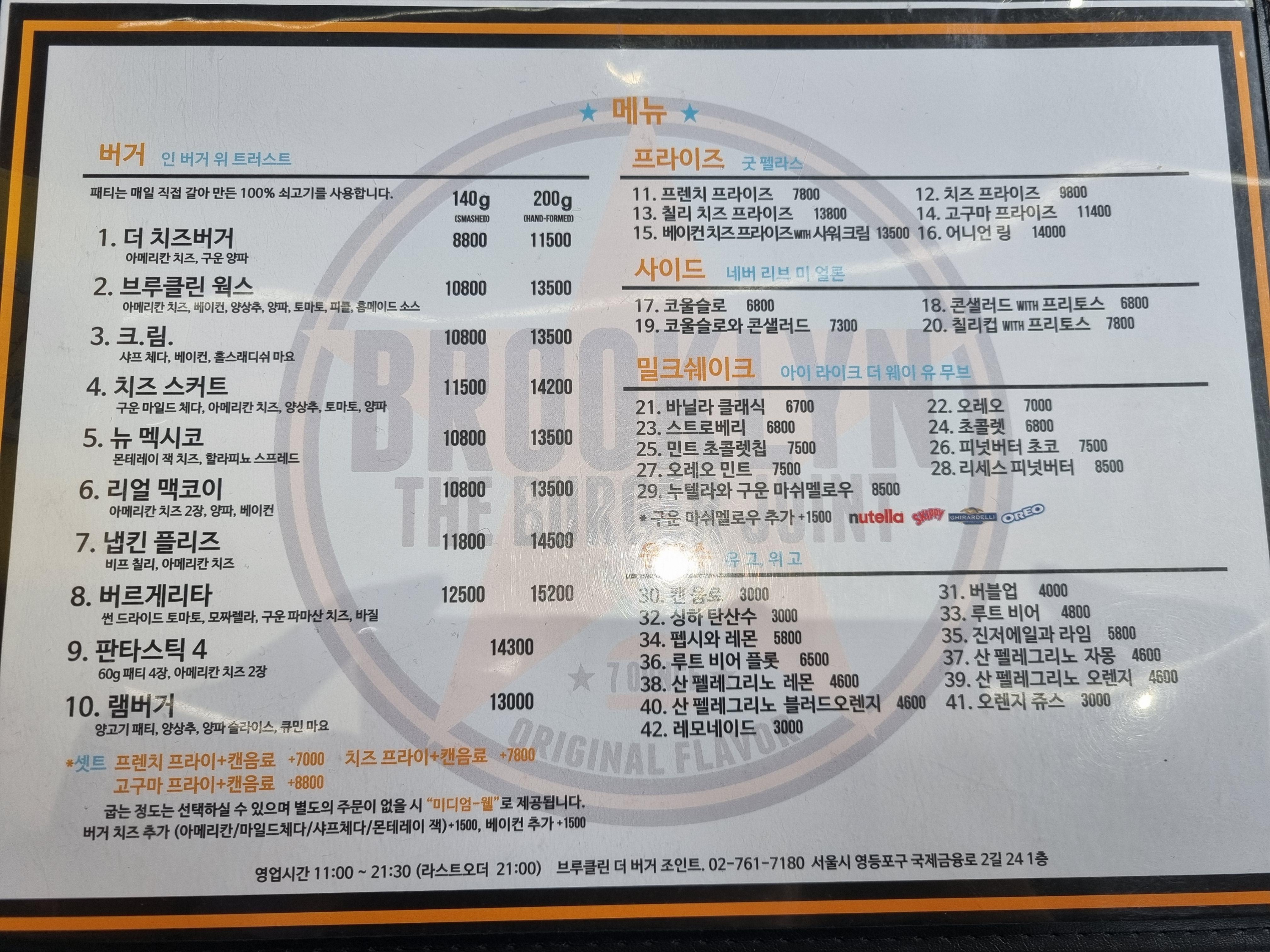 여의도 점심으로 인기인 핫한 미국 수제버거 브루클린더버거조인트.