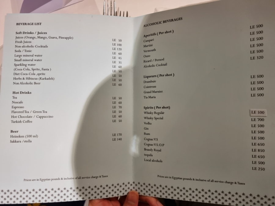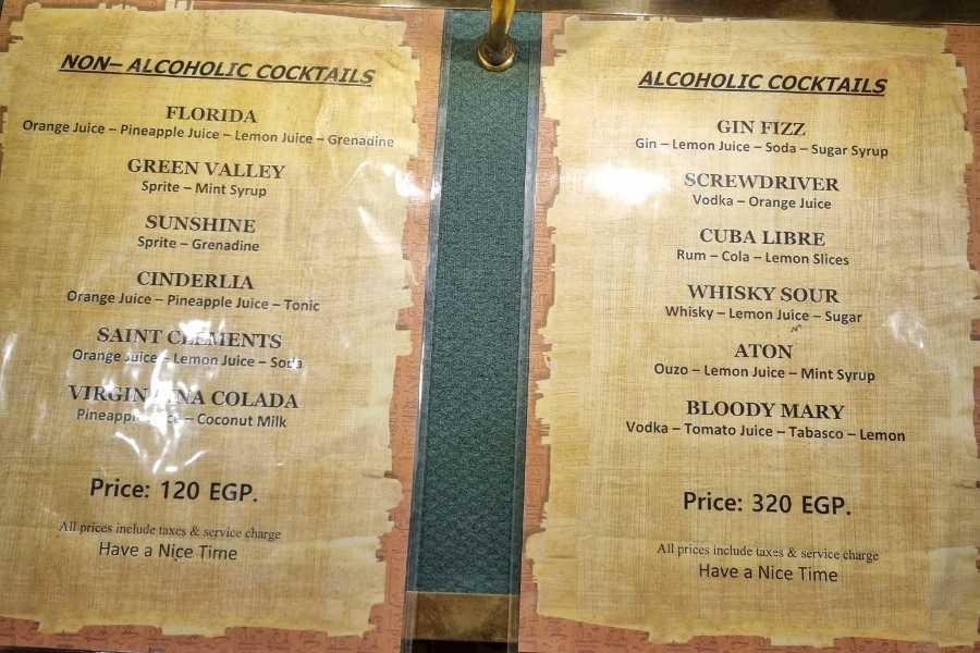 논알콜 칵테일은 120EGP =4달러, 알콜 칵테일은 320EGP = 10달러 정도라고 보면 된다.