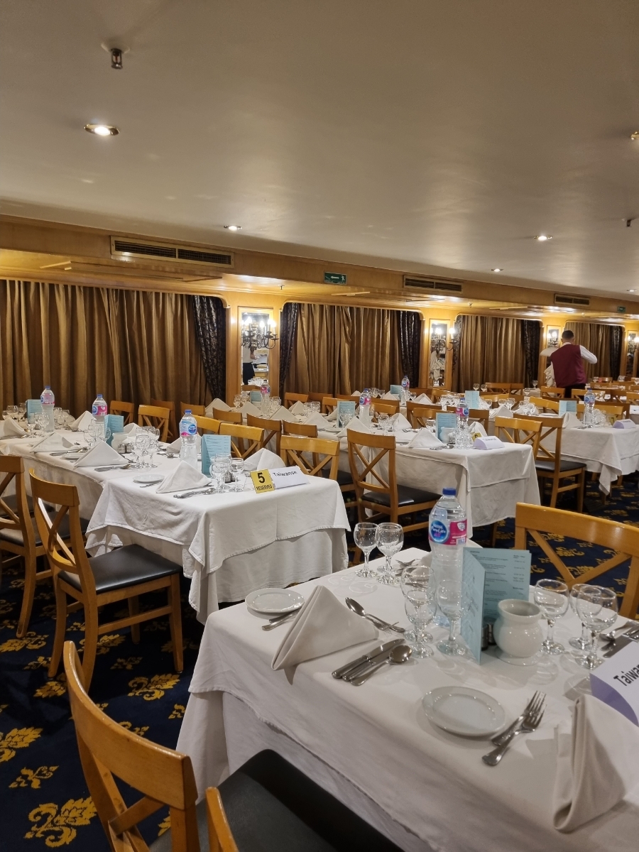 나일강 크루즈 식당은 매우 넓지만 테이블 간격이 좁아 좀 불편하다.