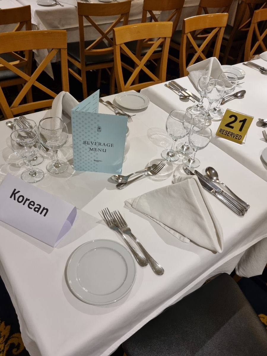 식당에서 국적별로 따로 자리를 마련해 준다.