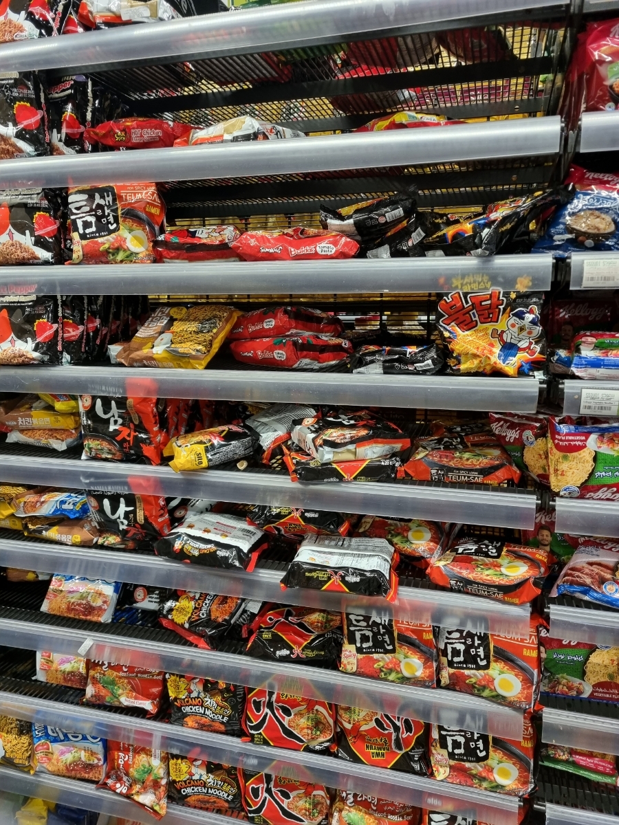 친구들 주려고 산 이집트 라면과 한 칸을 아예 차지한 플래그몰 한국라면. 인기를 실감할 수 있었다.