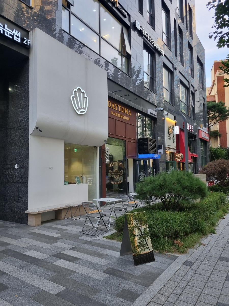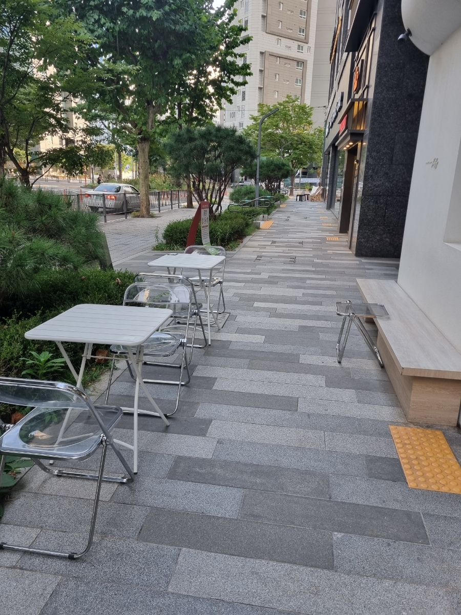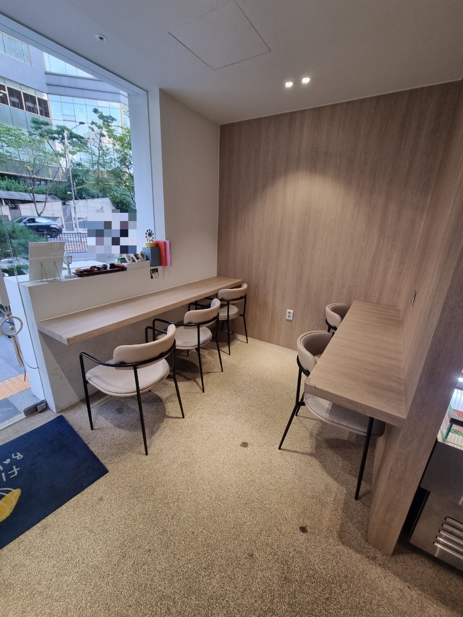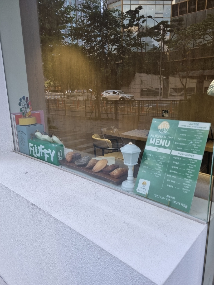 공덕역 베이커리 플러피는 안에도 6인석 정도의 자리가 있지만 좀 좁다. 야외에도 테이블 3개가 있어 날씨 좋은 날 커피와 디저트를 잠시 즐기기에 괜찮을 듯.