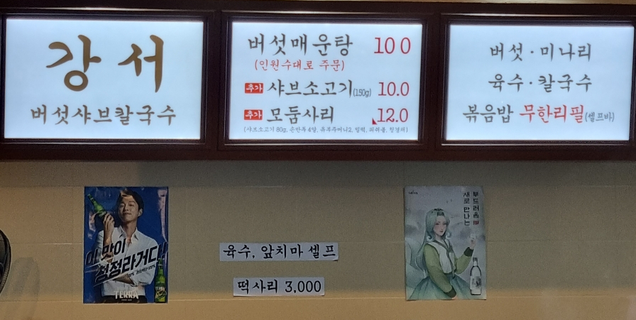 만약 야채가 부족하다면, 셀프바에서 버섯, 미나리, 숙주나물, 육수, 칼국수는 무료로 리필할 수 있다.