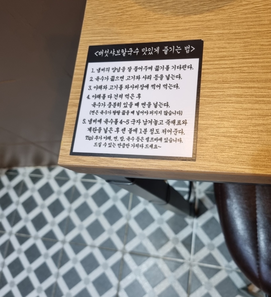 각 테이블에 붙어 있는 버섯샤브칼국수 맛있게 먹는 법 참고~