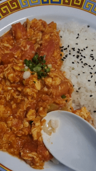 나는 토마토 계란덮밥을 주문했다.