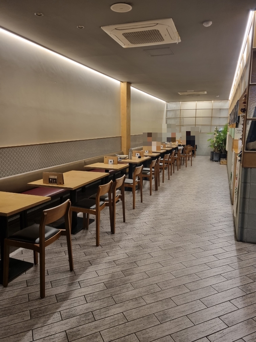 좁고 긴 공간. 오목교 룸X, 테이블간 간격 충분