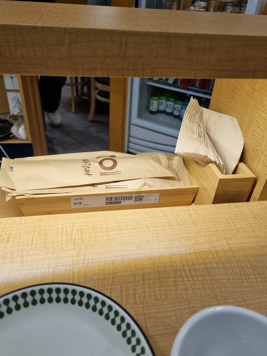 각 좌석 앞에 휴지와 수저가 있고,