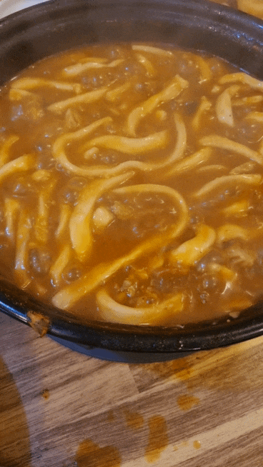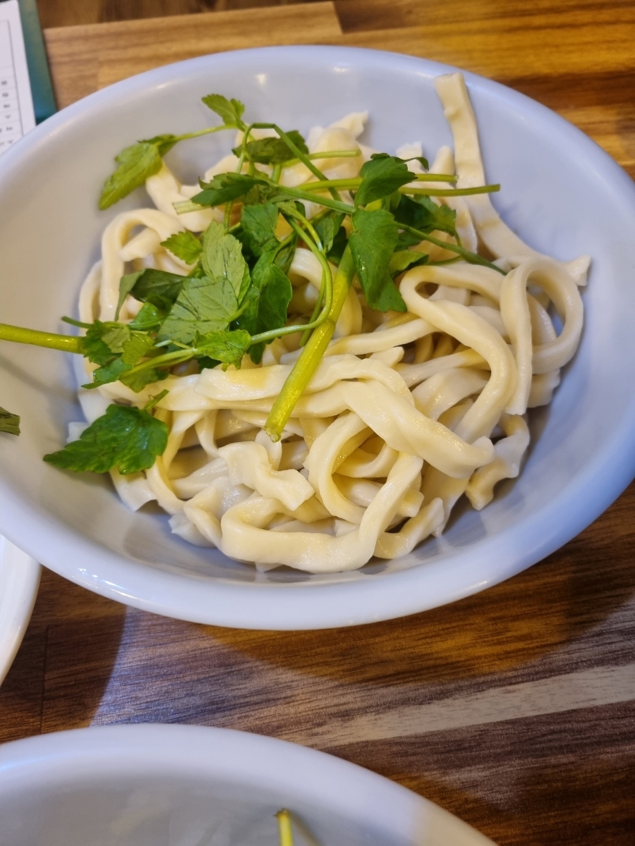 칼국수 면이 굵어서 오래 끓여야 맛있다.