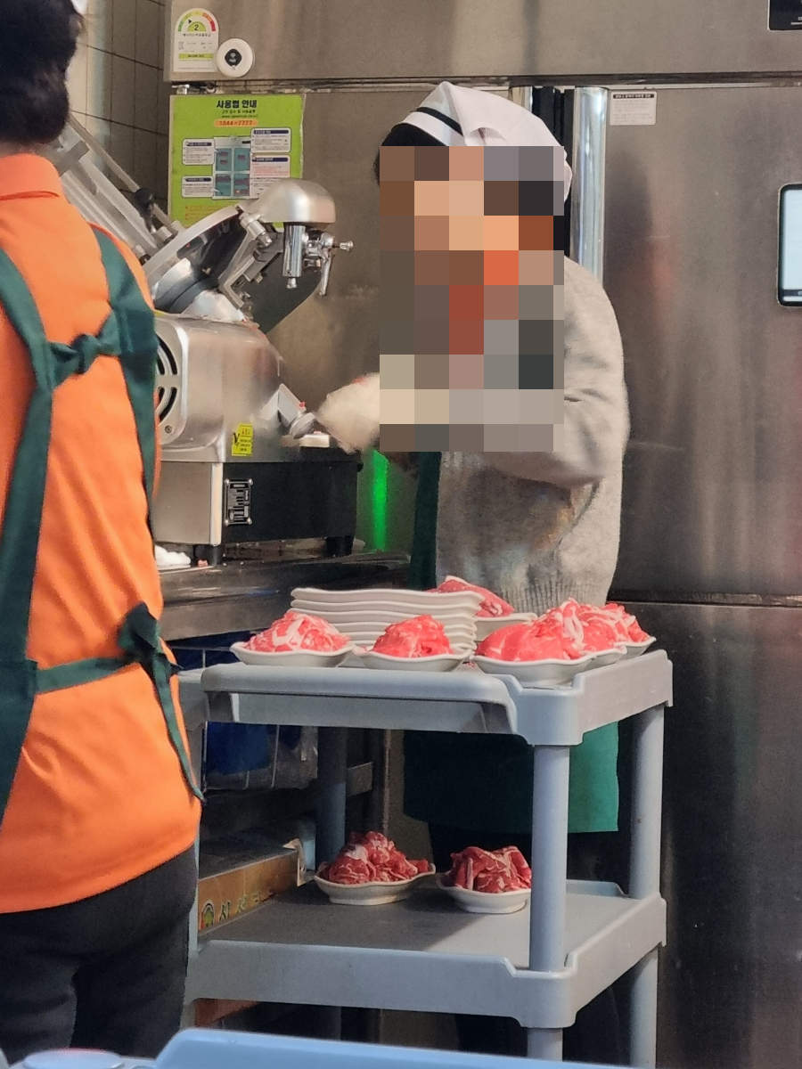쌓여있는 고기양을 보면 여의도 칼국수의 인기를 알 수 있다~