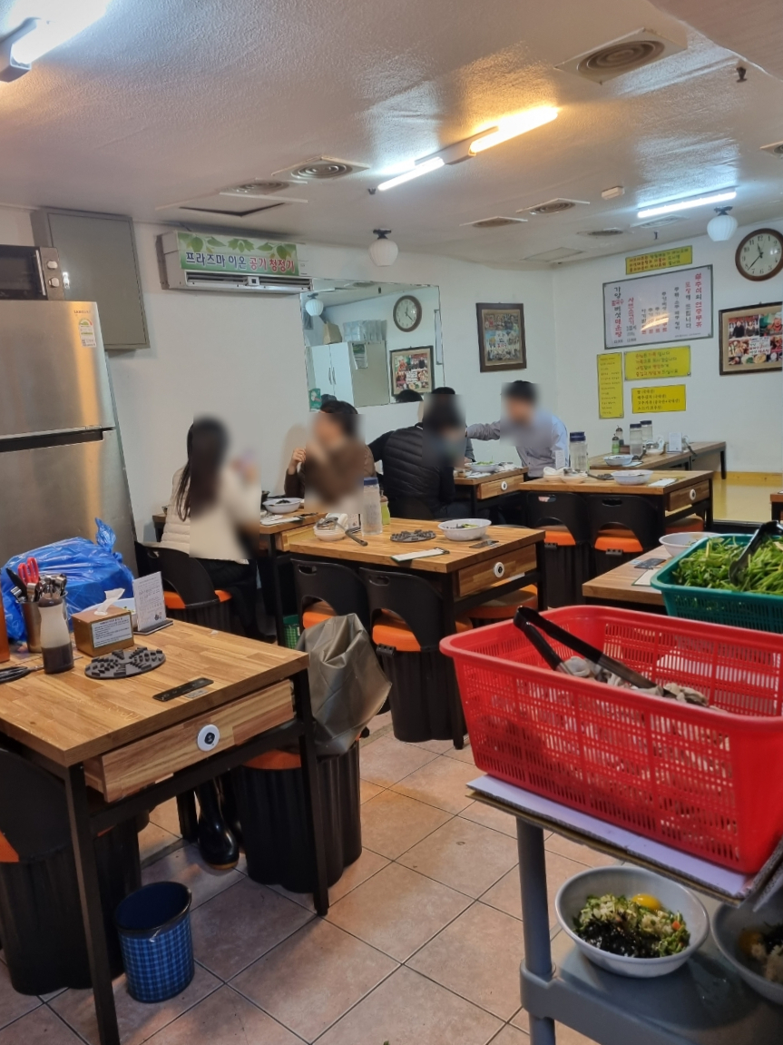 입식 위주, 좌식. 넓지만 테이블 간격이 좁고 시끄러운 편