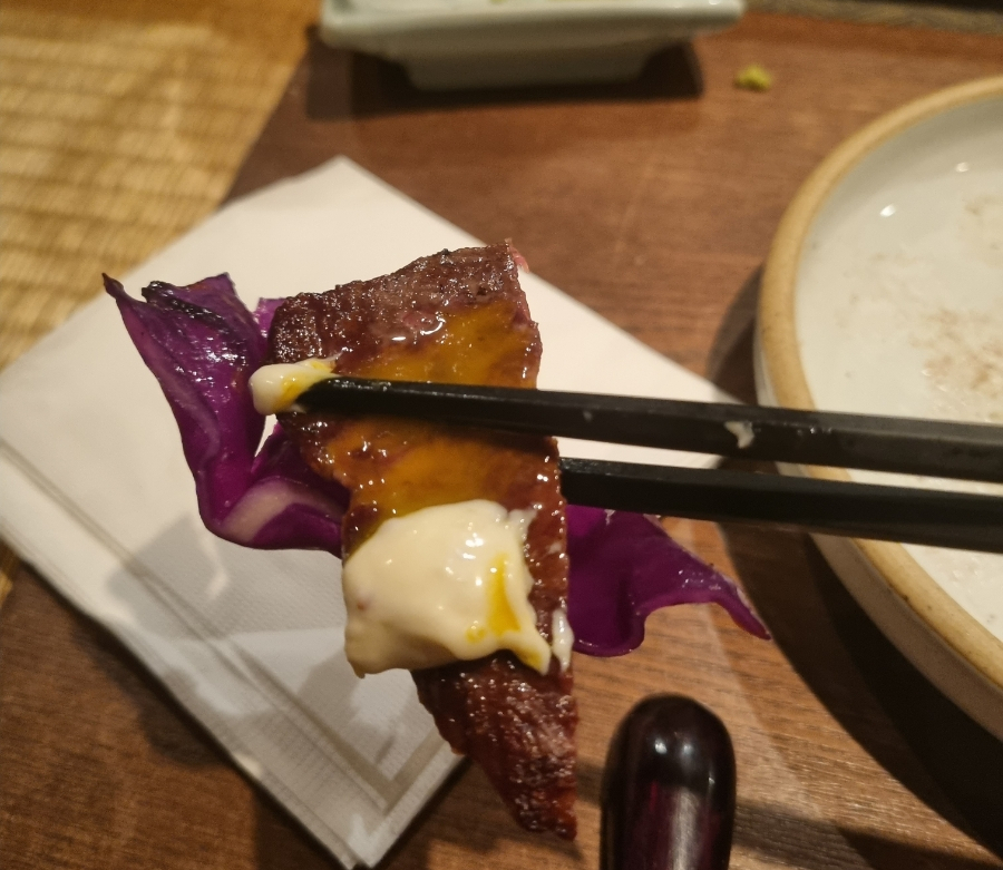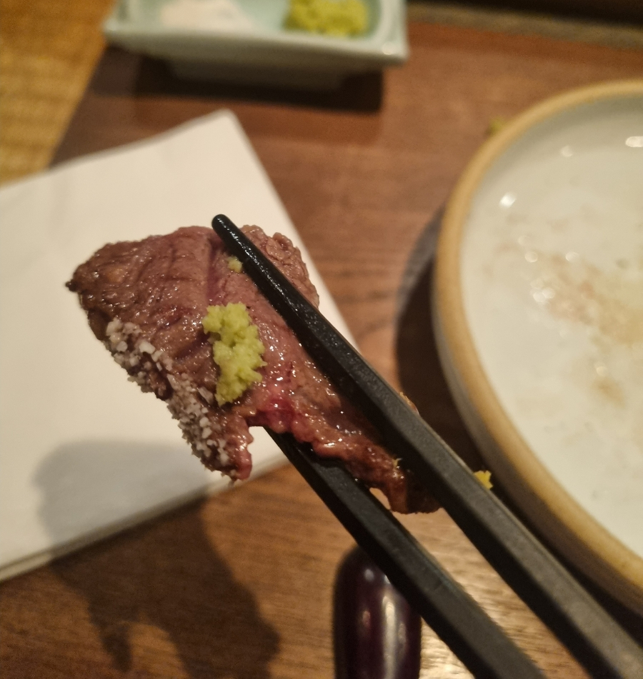 전반적으로 사장 마음대로 장사해서 인터넷에 썰이 올라오는 일식집 느낌이 좀 났다. 보통 한남동 오마카세면.. 굽기나 개인 커스터마이징 관련 질문을 물어보고 그에 맞게 조리해 주지 않나? 여기는 그런 거 없이 그냥 한 팀당 한 명의 요리사가 붙어 고기를 구워주고 설명해 주는 정도 밖에 안 되고 썩 친절하지도 않다. 툭툭대는 느낌.