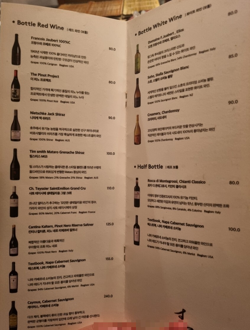근데 가장 저렴한 와인이 8만원, 생맥주 1.1만원,