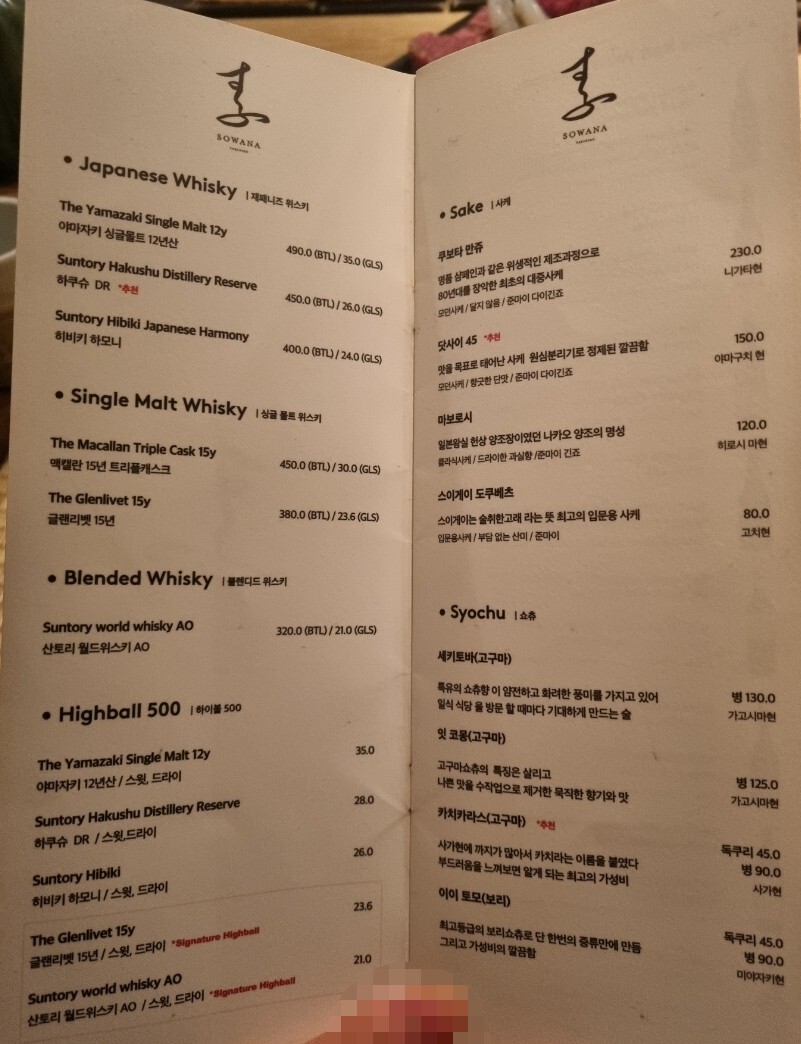 한남동 오마카세인만큼 다 바 형식인 소와나