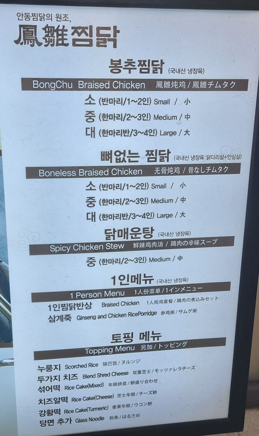 지히로 내려오면 바로 왼쪽에 위치한 봉추찜닭.