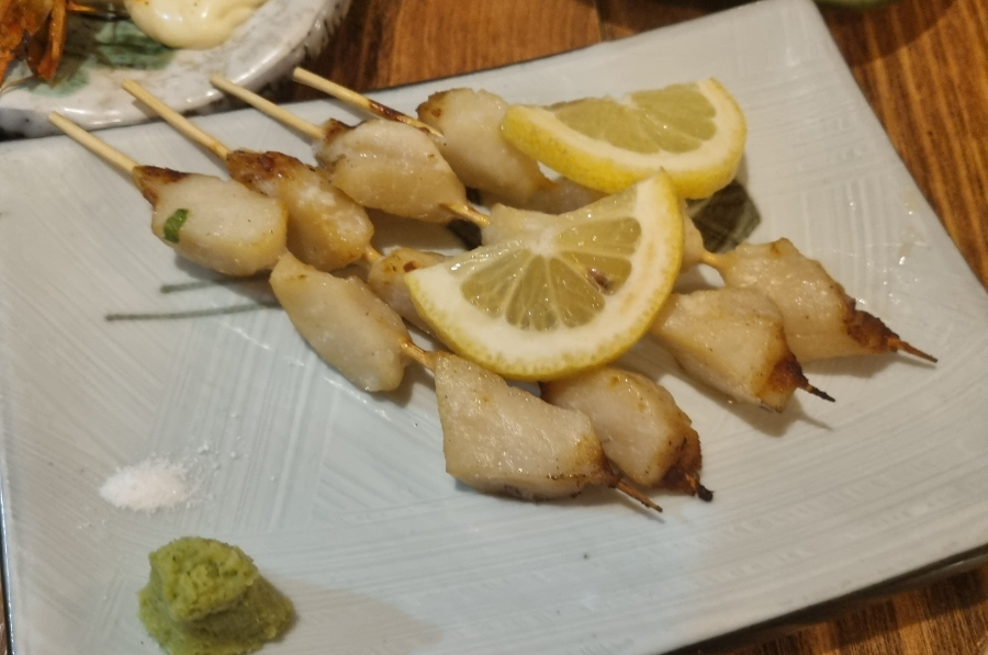 명란 가득한 꼬치구이에 파와 닭고기, 마늘 등의 꼬치구이!!!