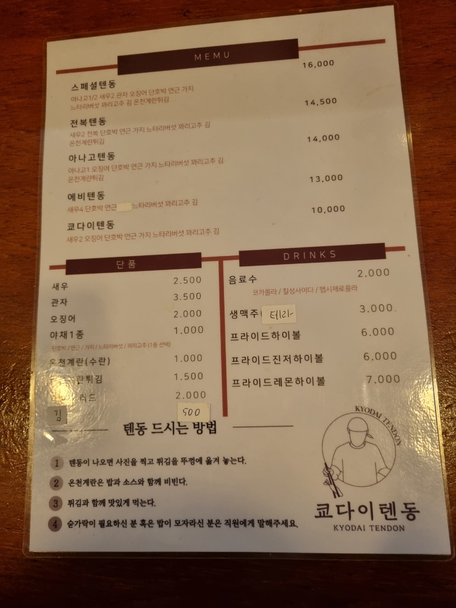 쿄다이텐동 1만원, 스페셜텐동 1.6만원
