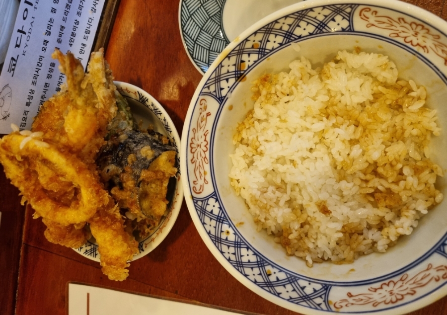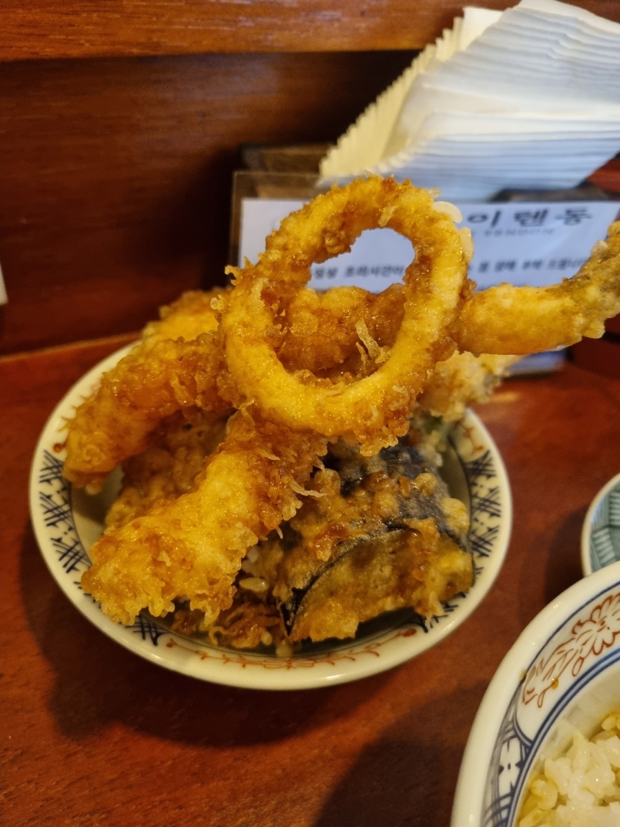 텐동 소스를 더 요청해서 아예 튀김에 찍어 먹었고,