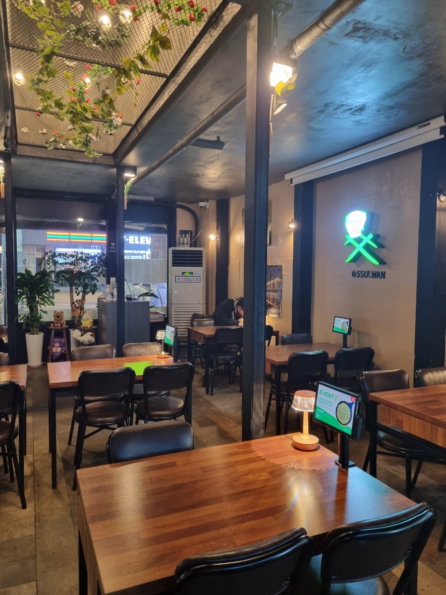 오술완은 룸은 없지만 공간이 넓어서 단체 모임하기 좋을 것 같다.
