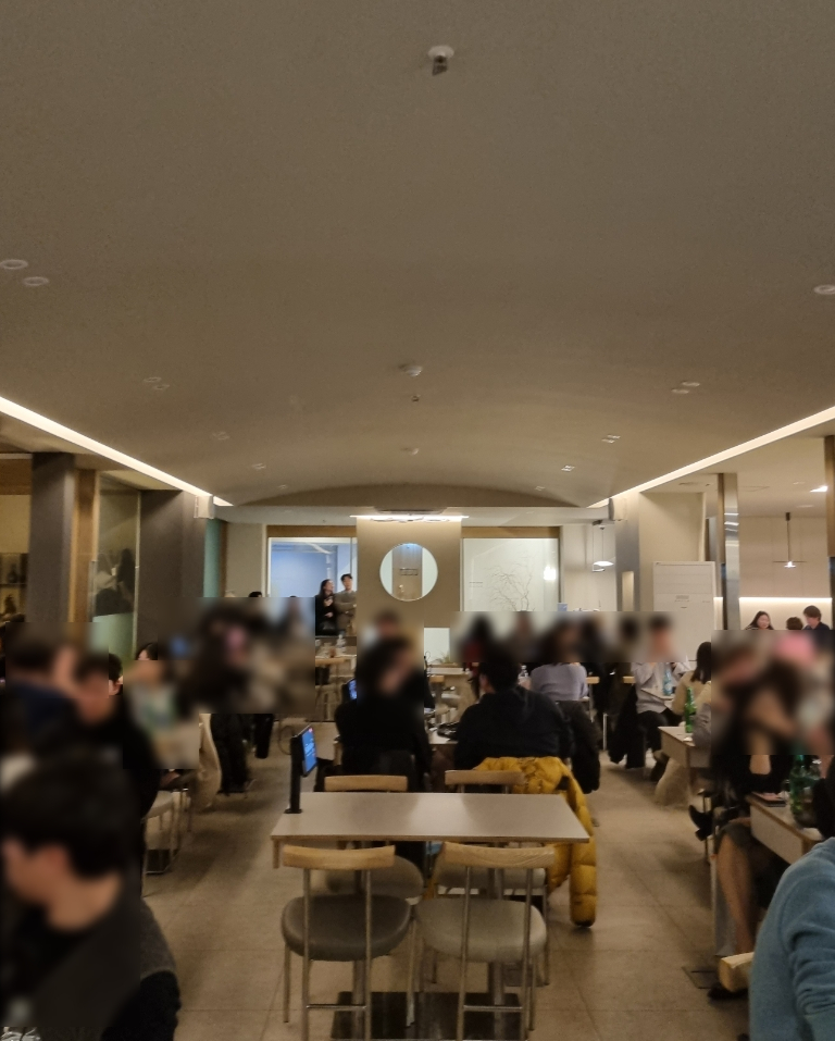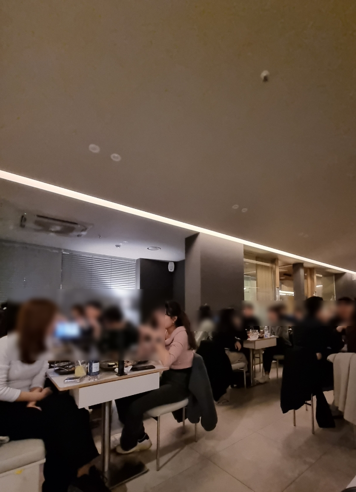 넓은 홀에 사람이 가득한 찐 강남 핫플