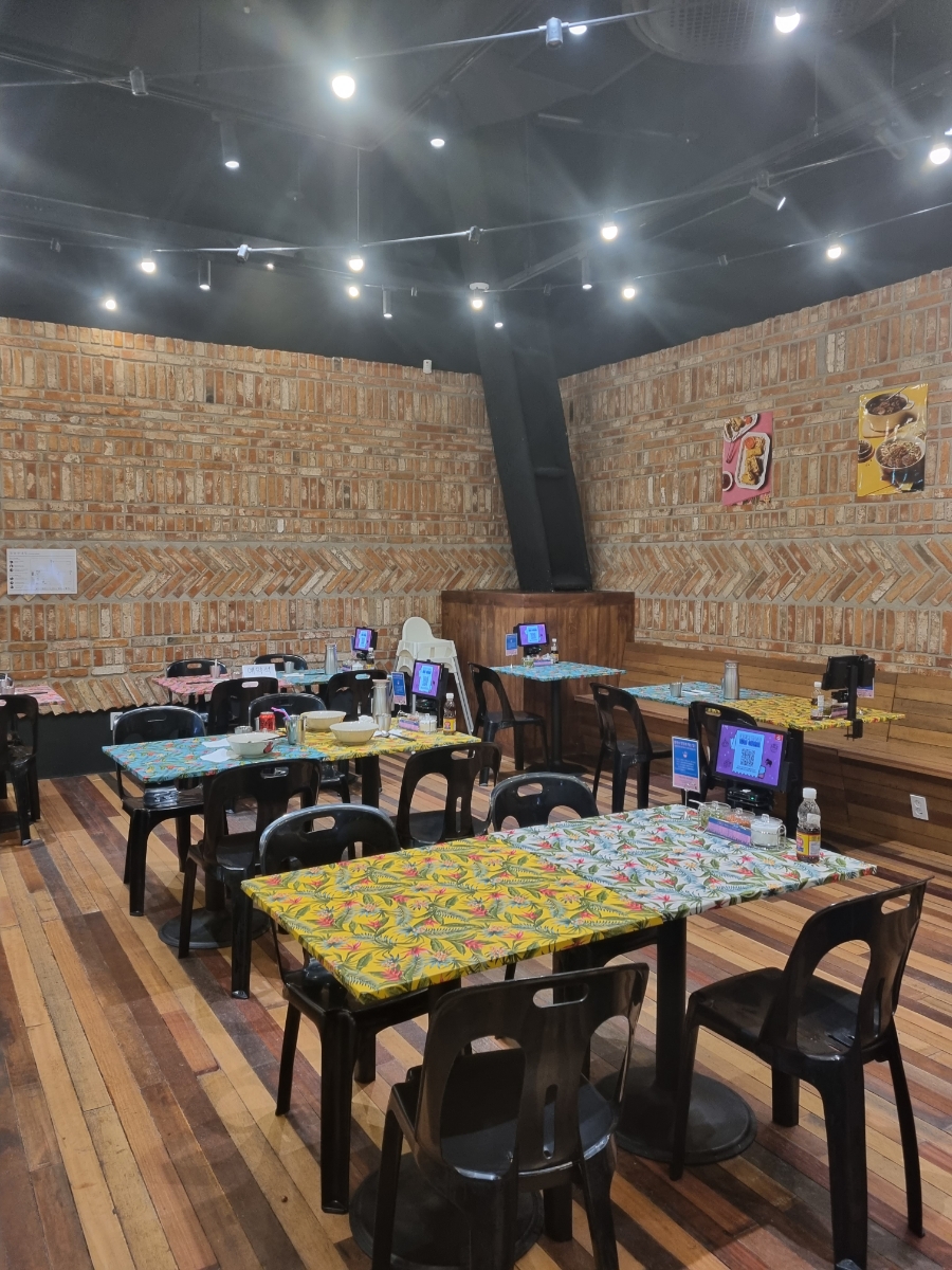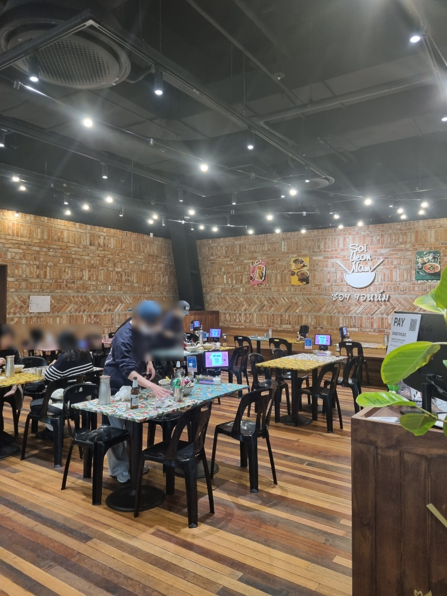 넓은 홀과 다채로운 태국 스타일 인테리어로 꾸며진 소이연남 목동점은 아늑하고 편안한 분위기를 자아냅니다. 테이블 간격도 넓어 쾌적하게 식사를 즐길 수 있으며, 4인 테이블 위주로 구성되어 있어 단체 방문에도 적합합니다.
