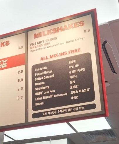 파이브가이즈 메뉴 중 인기 메뉴 밀크쉐이크!!