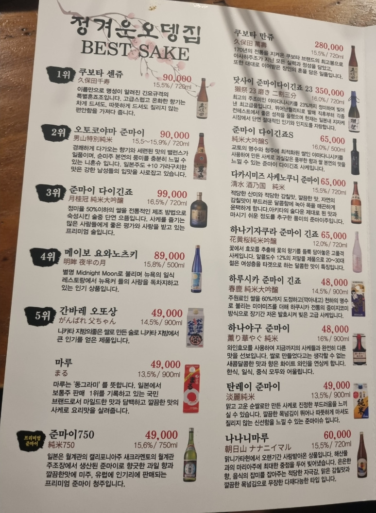 - 신선한 오뎅과 다양한 사케 종류