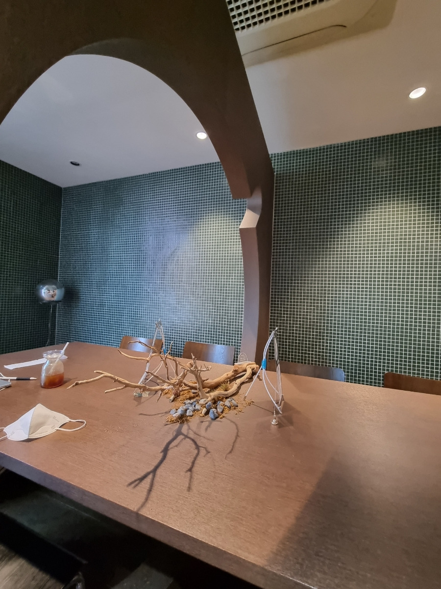 외부 자연의 느낌을 재현해 독특한 분위기를 자랑합니다. - 전통적 좌식 좌석과 현대적 테이블 좌석이 공존하여