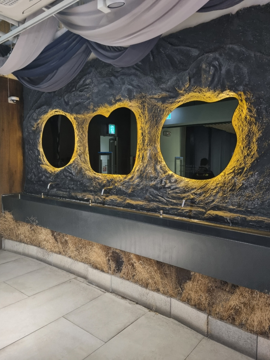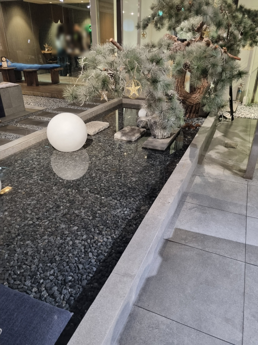 - 실내임에도 불구하고 소나무, 물길, 징검다리로