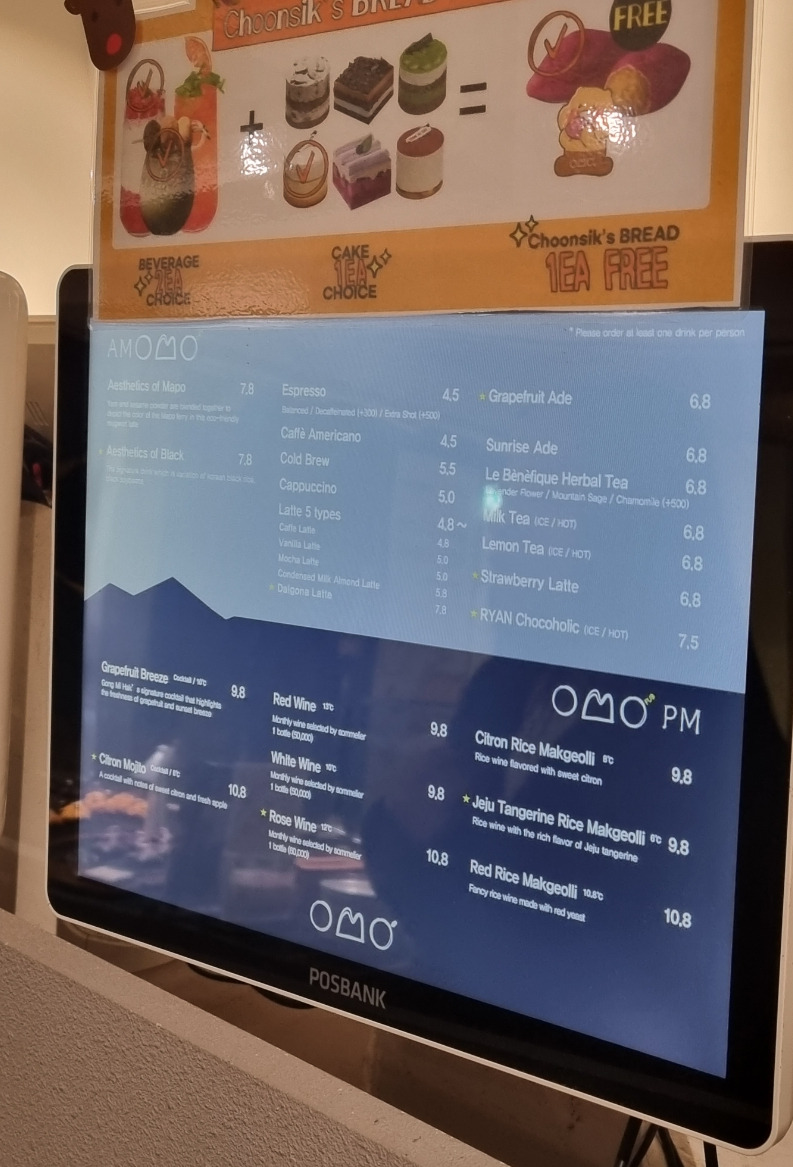 - 카페라테: 4,800원 (양이 살짝 적은 편이지만 자릿값으로 납득)
