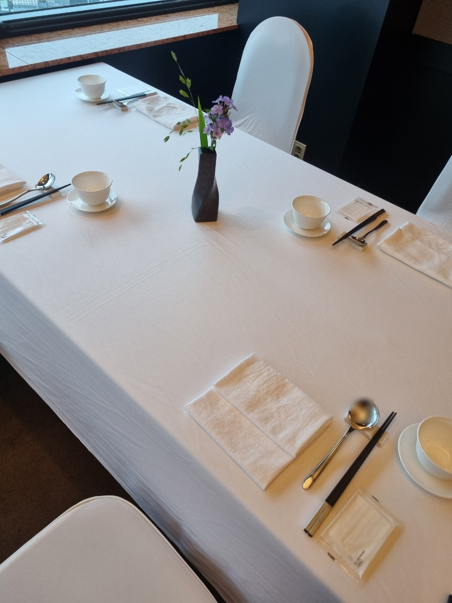- 테이블마다 계절 꽃이 놓여 있고, 옷걸이도 비치되어 있어 섬세한 배려를 느낄 수 있습니다.
