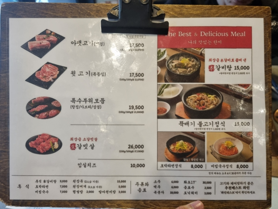 - 아랫고기, 윗고기, 특수부위모듬 등 부위별로 고기를 즐길 수 있습니다.