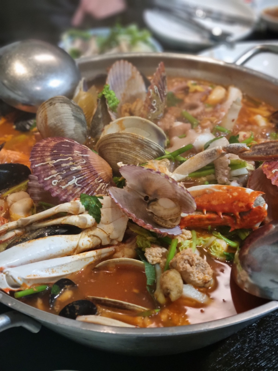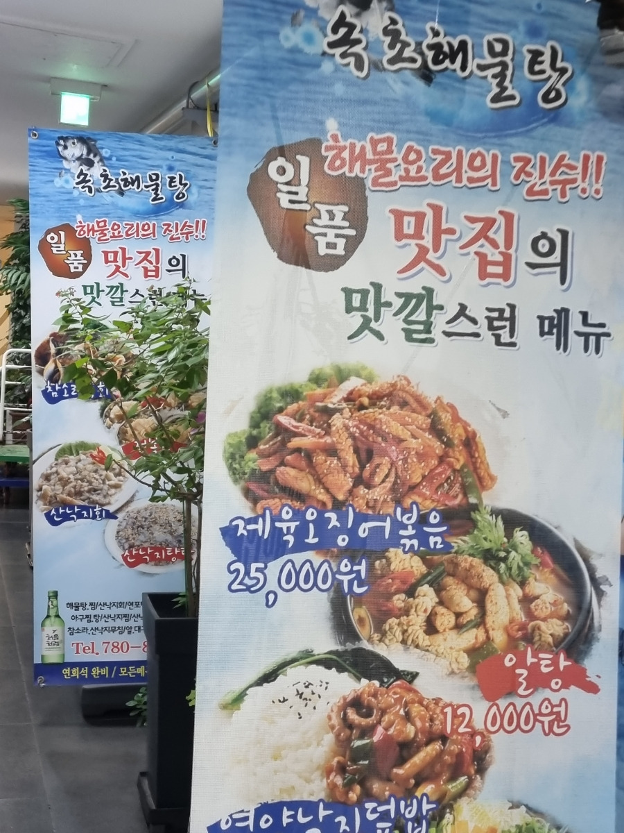 - 겨울에 딱 어울리는 속초해물탕은 살아 있는 낙지와 미나리가 풍성하게 들어가 있어 칼칼하고 얼큰한 국물이 일품입니다. 소주와 함께 먹으면 술이 술술 들어가는 연말 회식에 제격이죠.
