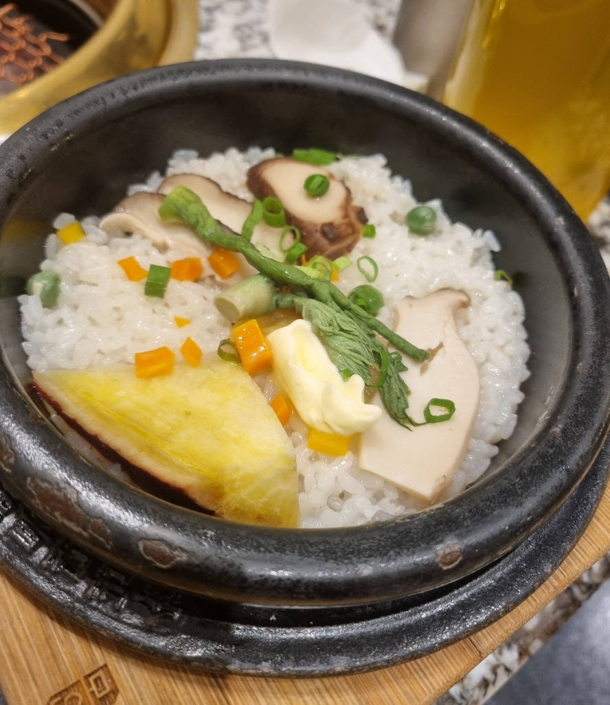 - 솥밥과 된장찌개가 포함된 런치 메뉴로, 버터 간장 소스를 넣어 비벼 먹으면 맛이 더욱 깊어집니다.