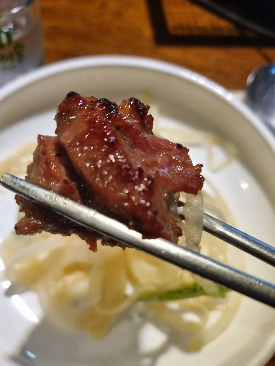 - 고기 결이 살아있는 돼지갈비는 양념이 잘 배어 있으며, 부드럽고 감칠맛이 가득합니다.