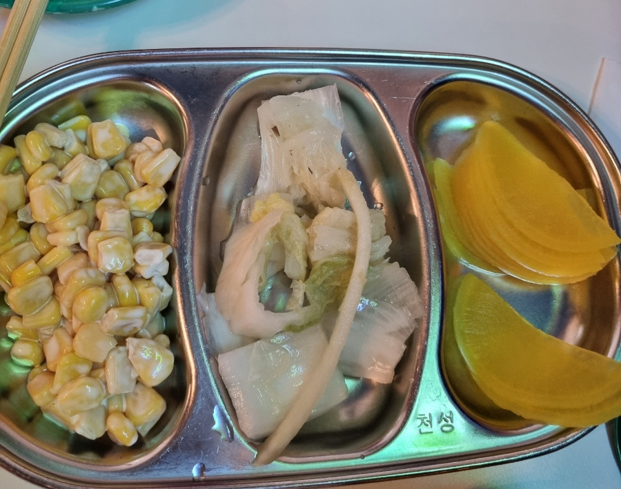 - 옥수수 샐러드와 단무지가 기본으로 제공되며, 특히 옥수수 샐러드는 칼칼한 국물과 잘 어울려요