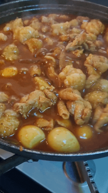 - 고기와 대창이 잘 익어 매콤한 국물과 아주 잘 어울린답니다.
