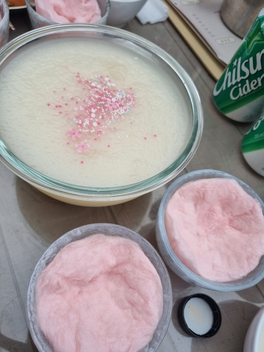 - 솜사탕이 녹으며 벚꽃색의 막걸리가 완성됩니다. 합정 소개팅에 딱 좋은 음료입니다.