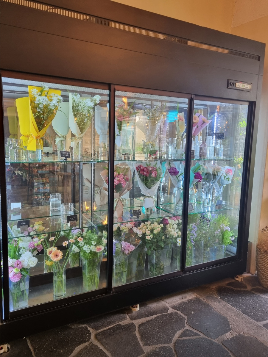 이곳은 예쁜 꽃다발을 구입하거나 다육이를 구매할 수 있는 고급스러운 카페입니다.