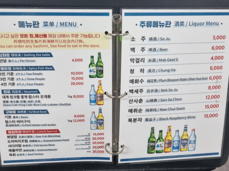 - 노량진 초장집과 연계되어 있어, 매운탕과 함께 횟감을 즐길 수 있습니다.