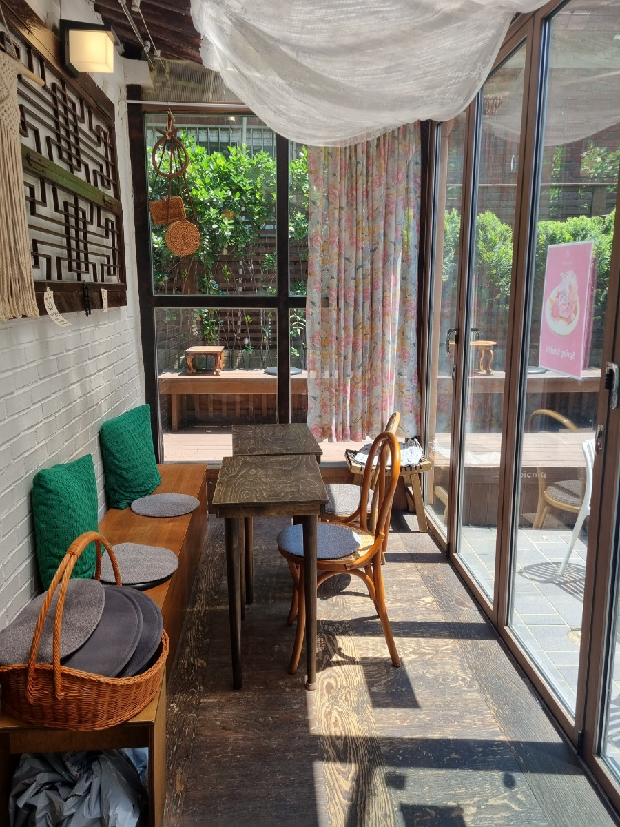 - 야외석: 햇볕을 그대로 받을 수 있는 테라스와 작은 상이 있는 좌석