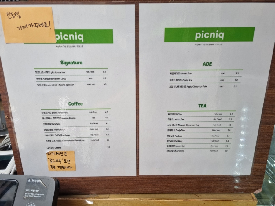 - 셀프 주문 & 픽업 시스템: 계산대 앞 태블릿에서 주문, 진동벨 수령