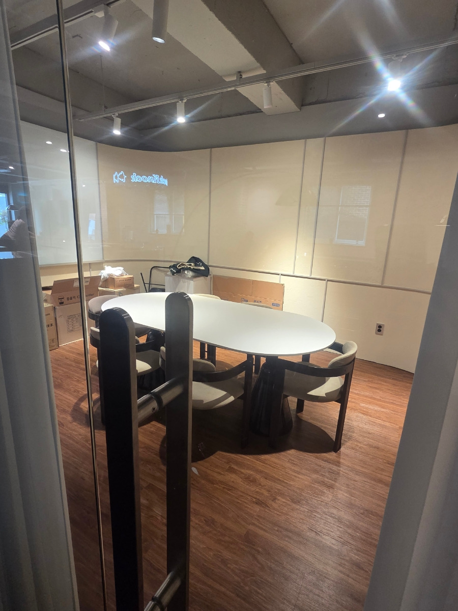 안쪽에는 6인 이상 예약 시 주말 이용 가능한 회의실이 있어요.