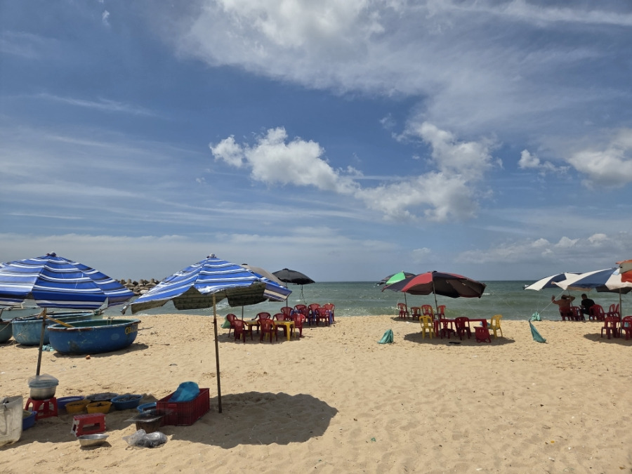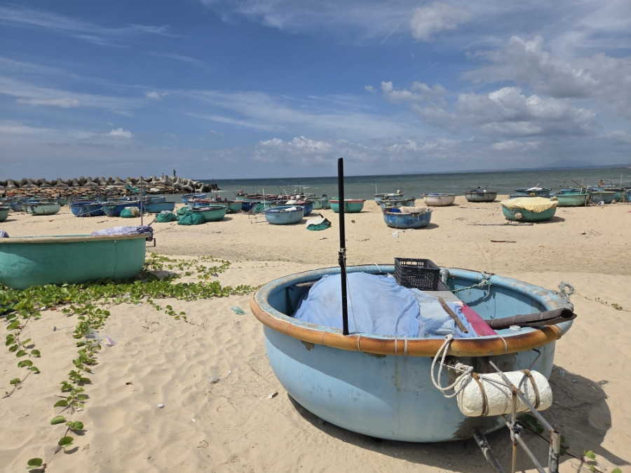 - 특징: 무이네 해변가에 정박된 알록달록한 동그란 배(바구니 배)들이 이국적인 풍경을 연출합니다.