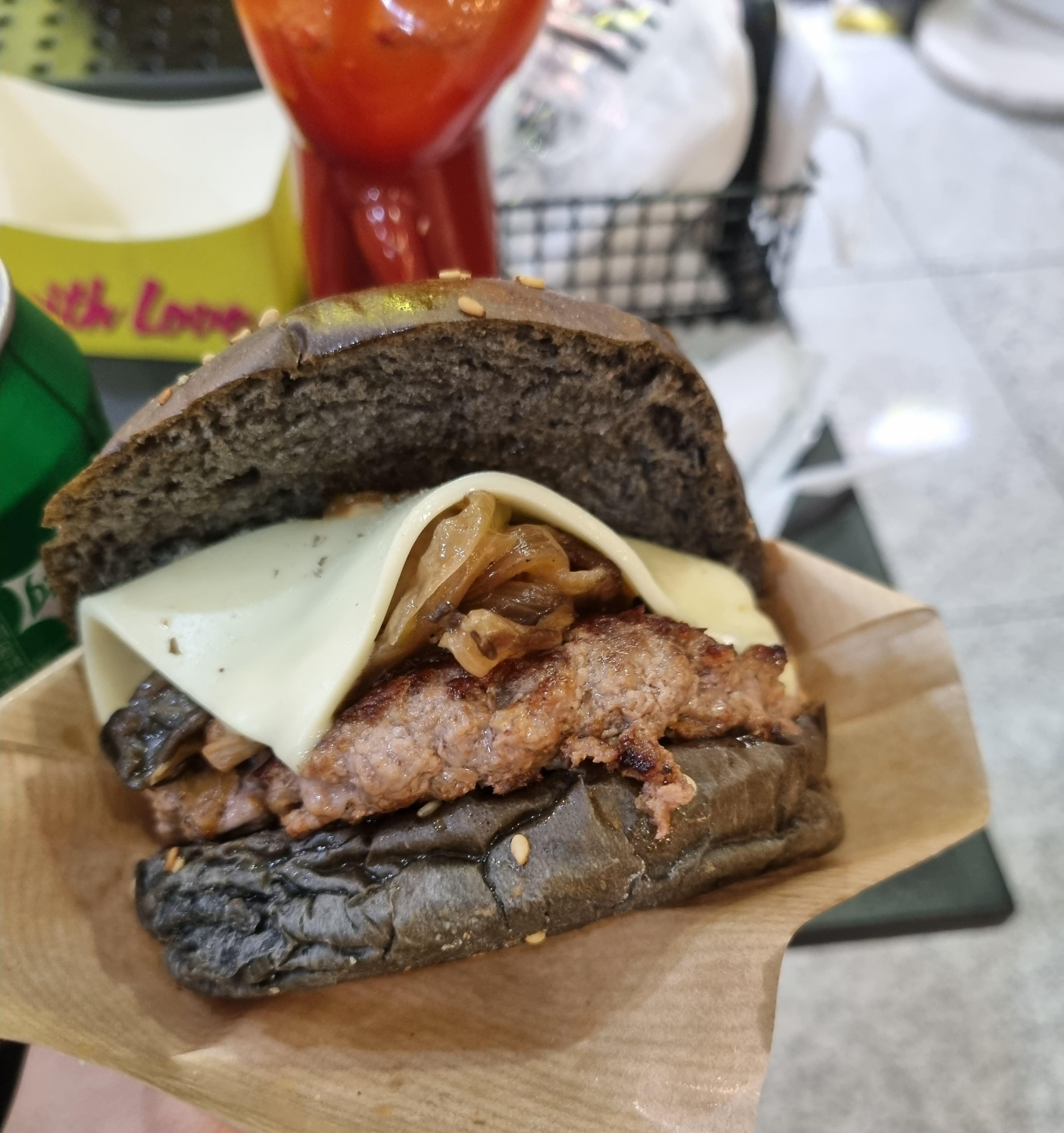 나는 트러플머쉬룸과 어니언링을 시켰다. 주로 플리즈버거와 더블치즈버거를 많이 먹는 듯하다.