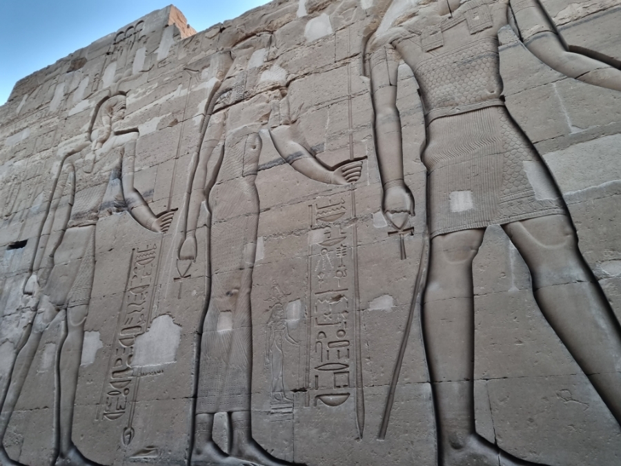 벽에는 곳곳에 얼굴이 정으로 망가진 부분들이 있는데, 이는 이슬람 시대를 거치며 우상숭배라며 정으로 쪼아놓은 부분이다. 진짜 세세한 부분까지도 정으로 쪼아 징하다 싶었다. 에드푸 신전은 천장이 까맣게 그을려 있는데 그 원인으로 추정되는 것이 1. 이슬람 시대 우상숭배로 정을 쪼는 게 한계가 있어 파괴하려 불을 질렀다 2. 모래에 덮여 있던 에드푸 신전 천장 위에 살던 사람들이 불을 때다 화재가 발생했다는 것인데, 뭔들 기나긴 이집트 유적지 역사에 일부일 것이다.