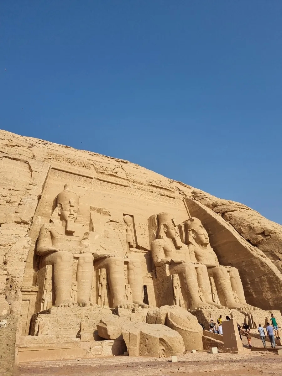 아부심벨 신전은 람세스 2세의 대신전으로 입구에 20m 달하는 석상 4개가 있는 걸로 유명한데, 이는 람세스2세의 청년기부터 시간대별 모습을 만든 것이라고 한다. 그래서 얼굴이 좀 비슷하다고 하는데... 잘 모르겠음ㅎ